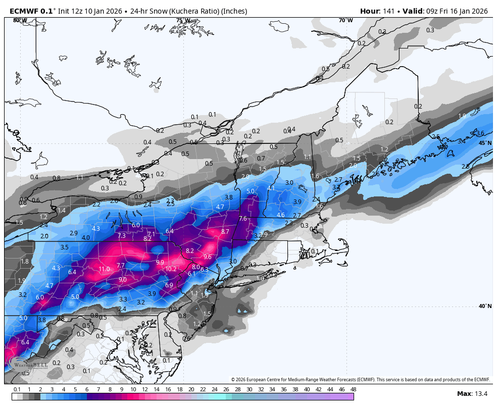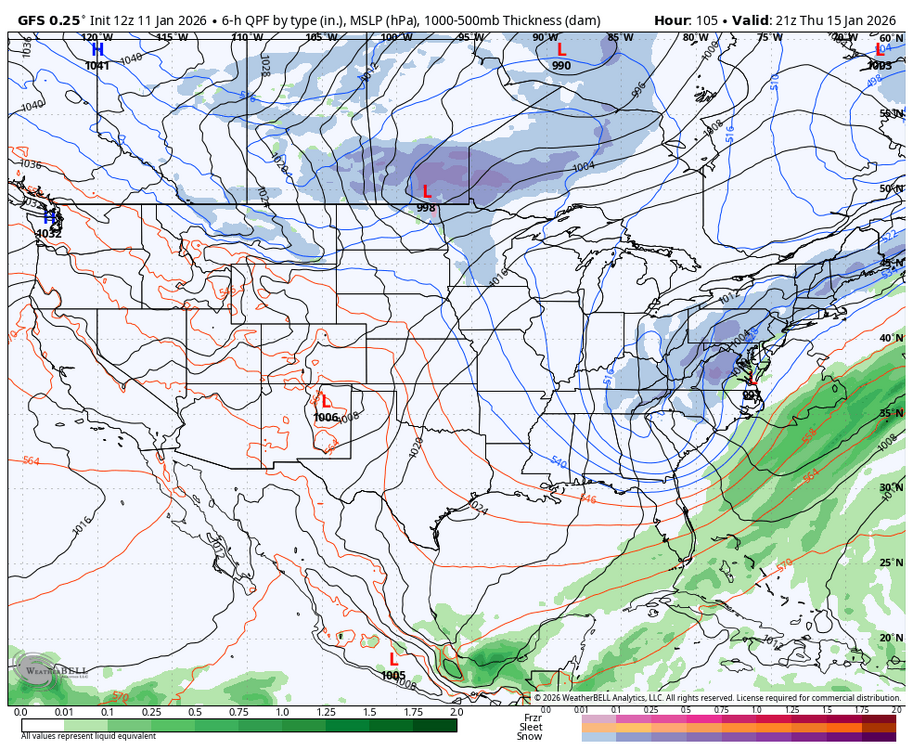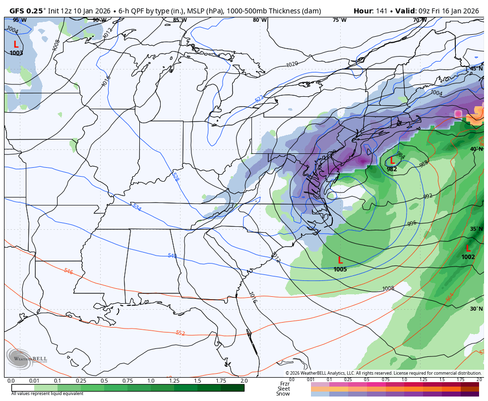 Thankfully Mt. Holly had a good update this evening on their discussion… KEY MESSAGE 3...Potential for a coastal storm Thursday and/or Friday. Impacts/details are very uncertain as these will depend on how close to the coast the low tracks. For Thursday and Friday, the upper air pattern is forecast to become more amplified across the East. The sharpening of an upper-level trough will develop a storm, however the details are much less certain at this time. The model consensus is pointing toward a storm, however whether this will become a coastal storm or one that simply goes out to sea is the forecast challenge. Some guidance suggests a significant winter storm while others are a miss. If the southern energy can remain out ahead of the northern stream energy along with a trough axis more neutral or becoming negatively tilted, then the surface low would tend to be closer to the coast. The guidance that has more of a positive tilted upper-level trough shear the system northeastward and keeps it out to sea. The closer to the coast scenario would favor more precipitation westward across our region, with the timing either Thursday or Friday. Given the wealth of uncertainty in the details, did not alter the forecast away from the NBM guidance. This continues to show low chances for now of rain and/or snow Thursday and Thursday night, however it currently is dry for Friday. If some of the guidance is correct, then PoPs would need to be added/increased for Friday. A colder air mass is forecast to be in place at the of next week and to start next weekend. -