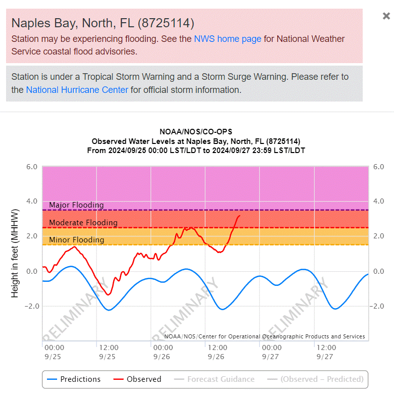 For Naples to hit Major Flood stage around the same time as Clearwater Beach shows just how huge the impact of Helene is/will be.