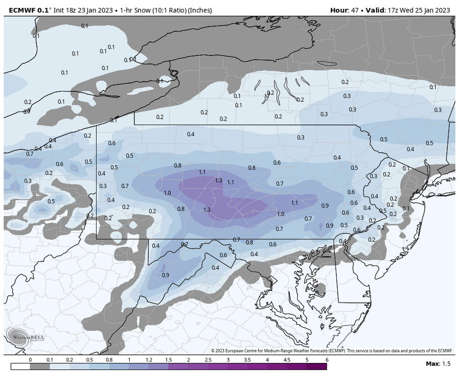 I typically don’t even bother with +snow depth maps as I don’t think they’re really meant to be applied to actual event snowfalls. It seems like those guys use them the most and it’s kind of the same mentality as saying “well it was warm the day before so the snow isn’t going to lay on anything”. The GFS has over an inch of QPF in 6 hrs in that DC-Baltimore corridor that’s mostly conditional snow. Obviously the D8-10 disclaimers aside, If that actually happened as modeled (which looked to be 2”+ hr rates for a few hours at one point), there’s absolutely no way you’d only have a plus depth change of 1-4” at the end of the event as it has for that area. It is a lot to consider with all the different snow maps. I warn in here at least once or twice a season about using TT snowmaps in particular since they include sleet/ice with the 10:1 snow totaling. But each method has their flaws/limitations and it’s important to know what kind of setup you’re looking at when trying to determine the best snow map to use for a given area for an event. Do we have marginal temps aloft in the column? Abnormally cold temps? Climo (which is >10:1 in Jan/Feb in C-PA), etc, etc. For example, given the marginal nature of literally every single snowfall that has come our way this winter in our general area…I’ve been mostly paying most attention to whichever map was less out of Kuchera vs straight 10:1. Typically, the Kuchera calculates higher than 10:1 around here. But since temps (surface and aloft) have been so marginal and warmer than average climo in the snow events that have materialized in C-PA…it’s been putting out less than 10:1 in most circumstances in our region this winter. For that D8-10 event, The 8-12”+ the straight 10:1 puts out in DC-Baltimore corridor is more of a 6-9” on the Kuchera (implying <10:1). I think that’s more than reasonable considering what the model is outputting in terms of conditional snow and temps. The 10:1 is reasonable too, really. Neither of those methods involve actual dynamics related to snow crystal growth. You can be 32ºF at the surface but if the lift is in the right spot in the snow growth zone aloft inside a death band you can still put down much greater than 10:1 ratios. Using the right snow map is definitely not a perfected science haha. -