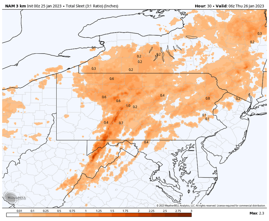 30/23ºF here with precip pretty close to arriving. I’m expecting more frozen (probably sleet) over ZR during the mixed phase of this event this morning. Short range guidance like the 3k NAM show a lot of freezing rain despite wet bulbing 925 and even 850mb temps below zero pretty far down into the central mountains.. so I don’t buy the widespread ice accrual outside of the ridge tops and the eastern Allegheny Front. I dunno if it’ll happen here, but I wouldn’t be surprised if a place like UNV sees a period of snowfall up front. Like I said yesterday, could be pingers mixed in with rain for a time outside of the advisory area (Sus Valley) as 925mb temps cool below zero with precip arrival but surface temps probably stay above freezing. As it looks currently, probably the Harrisburg area is the non-advised area in the LSV that has the best chance of that scenario. -