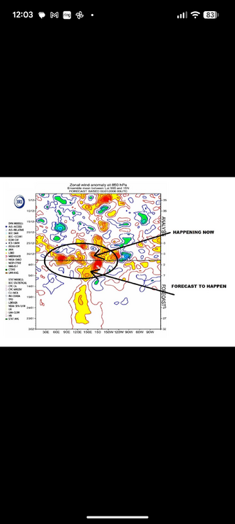Another good write up regarding the disappearing La Nina IT’S TIME TO SAY GOODBYE TO LA NIÑA What this chart is showing is a series of strong westerly wind bursts across the western and central Pacific, and this is exactly the kind of atmospheric signal that I said earlier this season would start working against La Niña and help bring it to an end. Under a typical La Niña background state, the Pacific is dominated by stronger-than-normal easterly trade winds, which drive warm water westward toward Indonesia and allow colder water to upwell across the central and eastern Pacific. That cold-water upwelling is what sustains the La Niña pattern, but this is what I believe is now beginning to change. When we start seeing repeated westerly wind bursts like the ones highlighted here in yellow, the atmosphere essentially begins to flip the script. These westerlies weaken or oppose the trades, allowing warm water to surge eastward across the equatorial Pacific. That process triggers a downwelling Kelvin Wave beneath the surface, carrying a large pool of warmer-than-normal subsurface water toward the central and eastern Pacific. Once that warm pool begins to surface, the cold anomalies tied to La Niña lose their foundation and the pattern starts breaking down, and this is exactly what I’ve been talking about for quite some time. This isn’t an isolated blip or noise in the data. It is a structural shift in the coupled atmosphere–ocean system. The more frequent and sustained these westerly bursts become, the harder it is for La Niña to maintain itself, and in my view, the system is now gradually transitioning toward a neutral, or potentially even a weak warm-phase background. I’ve circled the yellow westerly wind bursts on this chart, and I want to be very clear: these winds are now observed and are happening right now. This is not a forecast. These are current, ongoing observations. In my opinion, these westerly winds should be the nail in La Niña’s coffin. I’ll go a step further. I believe that after this week, La Niña will no longer be the dominant background state in the Pacific. What we’re seeing here is one of the classic mechanisms that brings La Niña to an end. The atmosphere is no longer reinforcing it. The atmosphere is now actively working against it, and the Pacific is already responding. There is plenty of winter still ahead, and within a week or so, you’ll begin to see that reflected in the pattern. -
