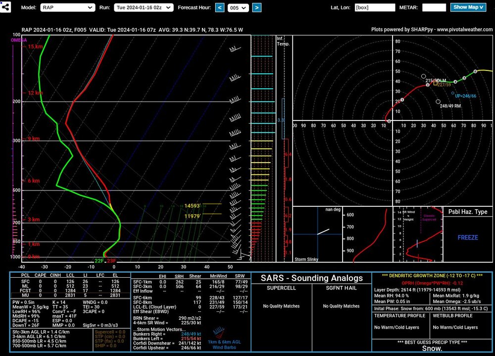 Latest 02Z HRRR at 6AM-- area averaged sounding including most of the DCA-BWI corridor shows a sufficient sounding for some great looking dendrites. We've had more saturated soundings, stronger omega, deeper DGZs in bigger events, but this will still produce some locally heavy snowfall rates and lead to some pretty tough travel conditions. Looks like snow lovers will want to enjoy this one. May not get another real good shot at this again for several weeks.