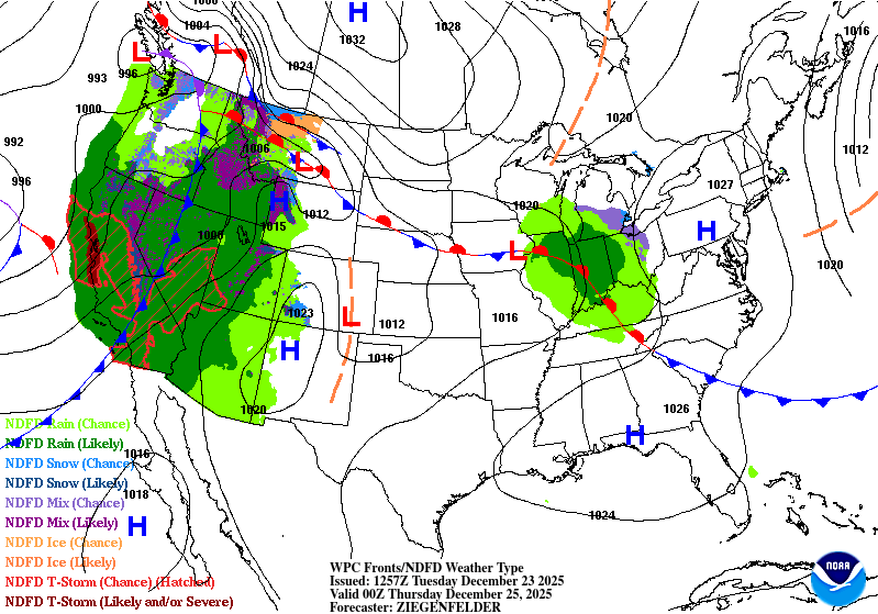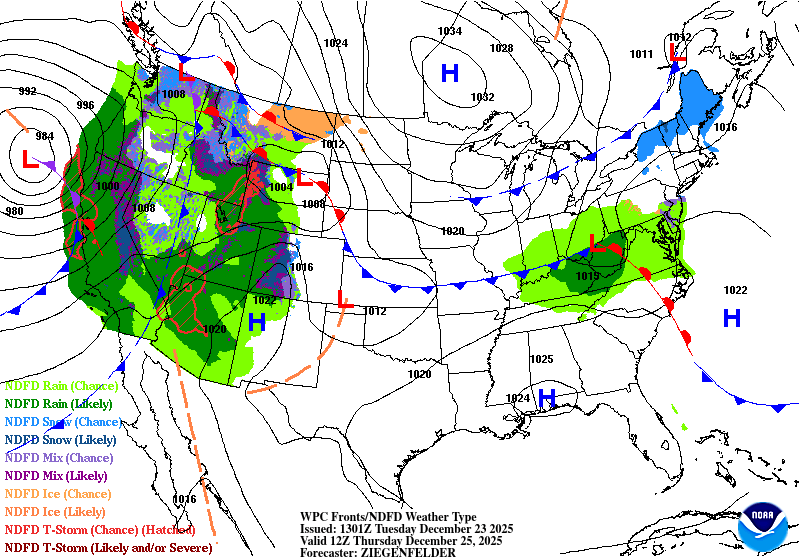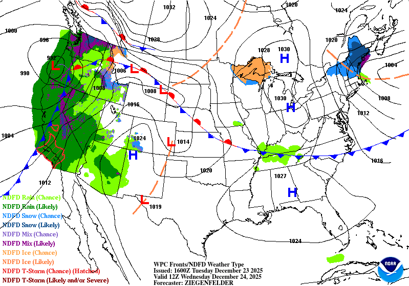 Decent call here for the pattern. Nothing to disrupt Christmas travel too much. Some wet wx in the S sub on Wed, and a LP moving in from the W will bring some sloppy wx on Thurs eve in to Friday. Merry Christmas ev1! Hope your holiday's are blessed