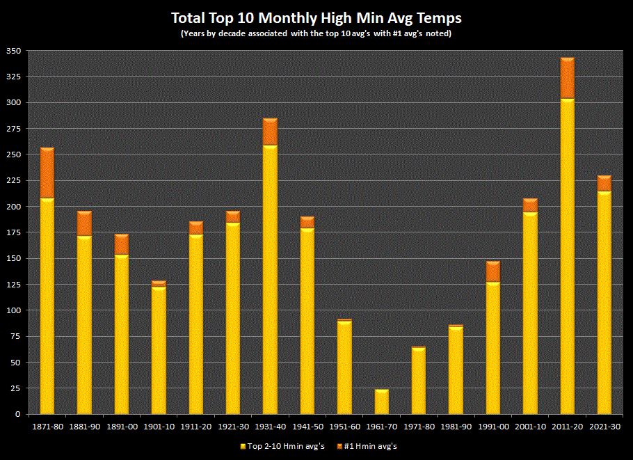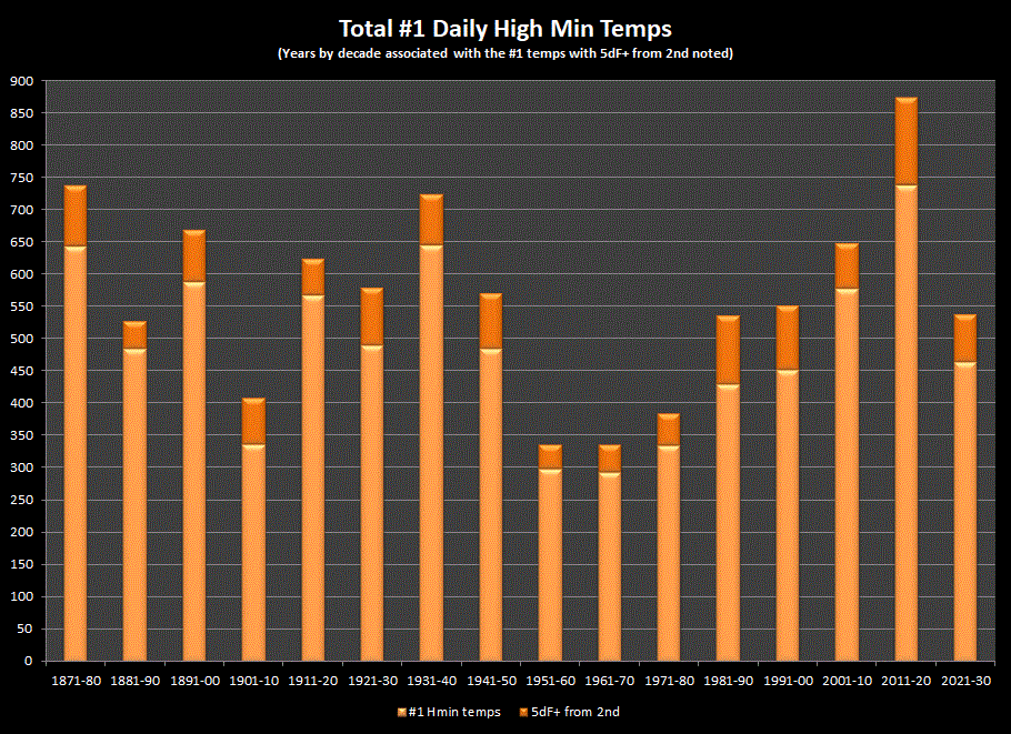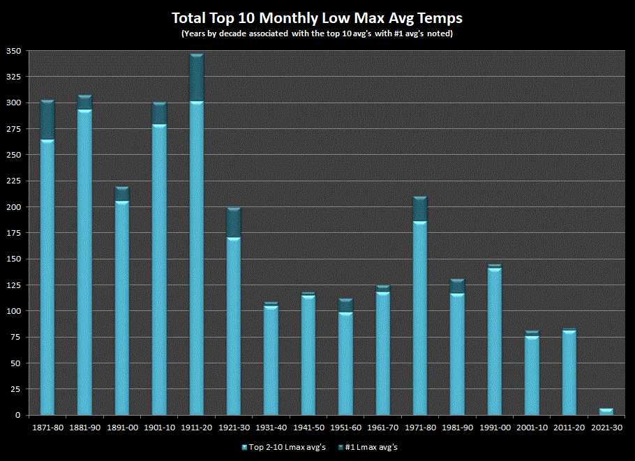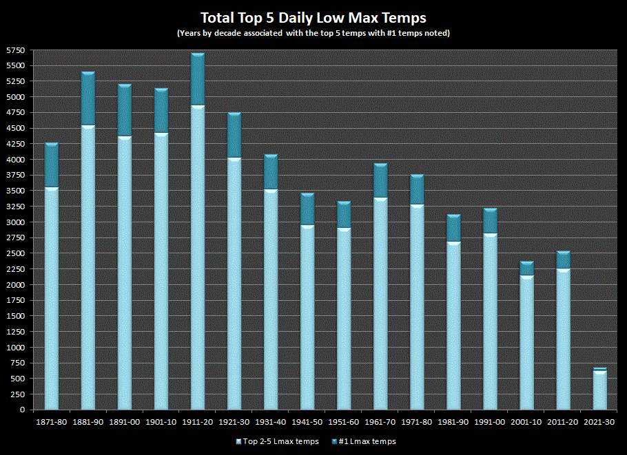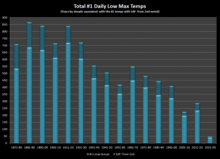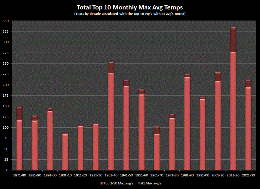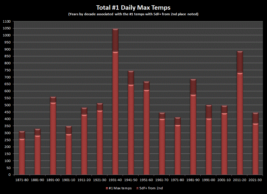 Finished updating my top 5/1/10 data for 2025. In the next few posts, I'll show how this current decade is progressing in Max, Hmin, Low Max, Min, and Precip extremes. Eventually, I'll add daily avg's. Already have that for DLH & MSP. Snow data is a trickier metric, so not sure if I'll do that or not. Data from 20 long period stns with start yrs from the mid 1870's n earlier. Duluth, Marquette, Minneapolis, LaCrosse, Madison, Milwaukee, Chicago, Dubuque, Moline, St. Louis, Alpena, Lansing, Detroit, Indianapolis, Louisville, Toledo, Cleveland, Cincinnati, Pittsburgh, and Erie. (Note: Just click the text portion below, and that'll pop up and make it easier to read.) Extreme Max temps