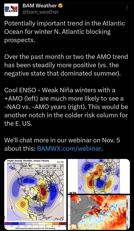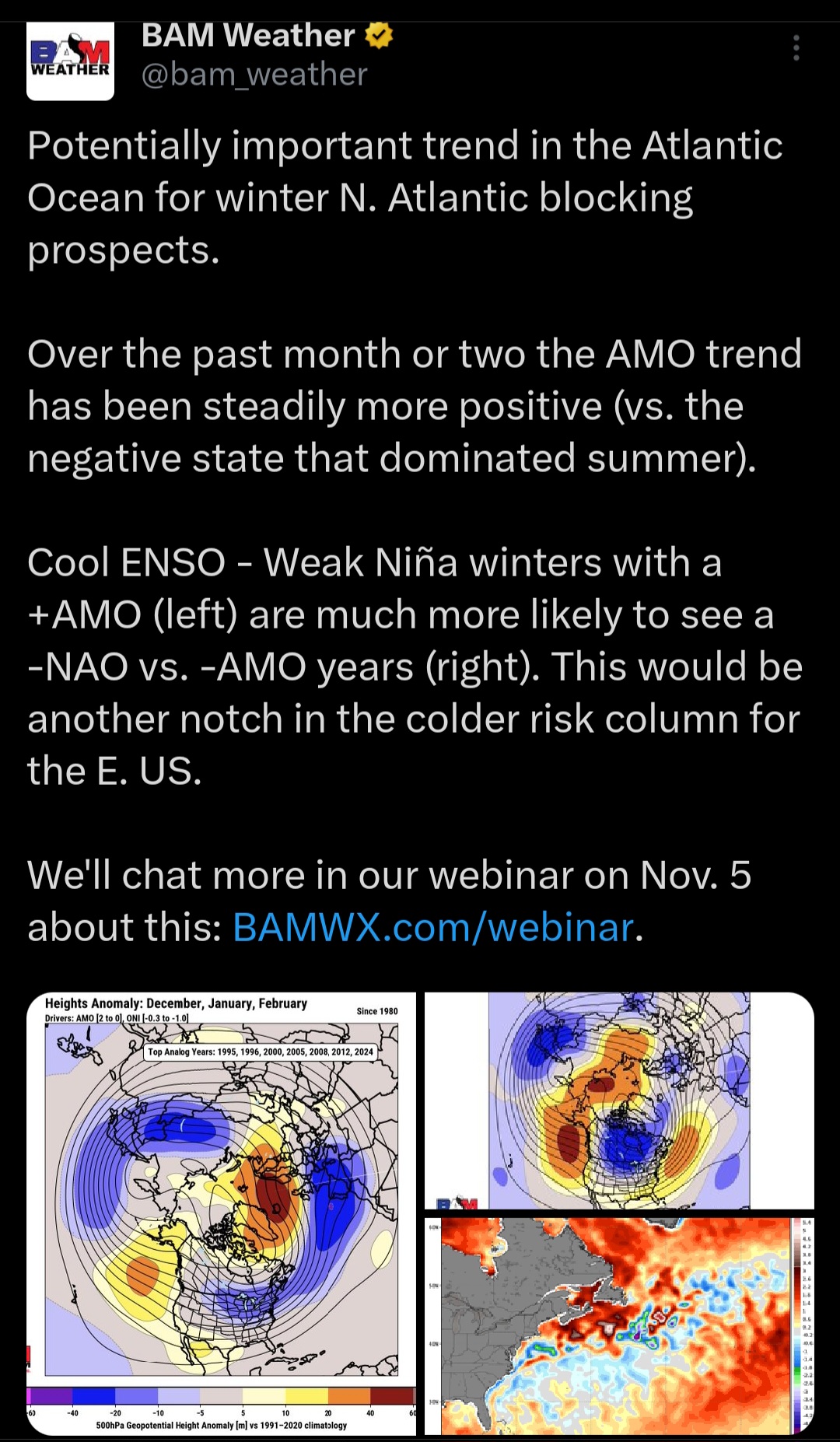 Their winter forecast is similiar to others on social media in regards to this winter. Weak La Nina , alot of snow cover up north and a greater chance of a negative NAO.