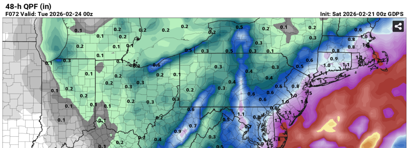 along the coast including NYC. NAM/GFS both signal potential for