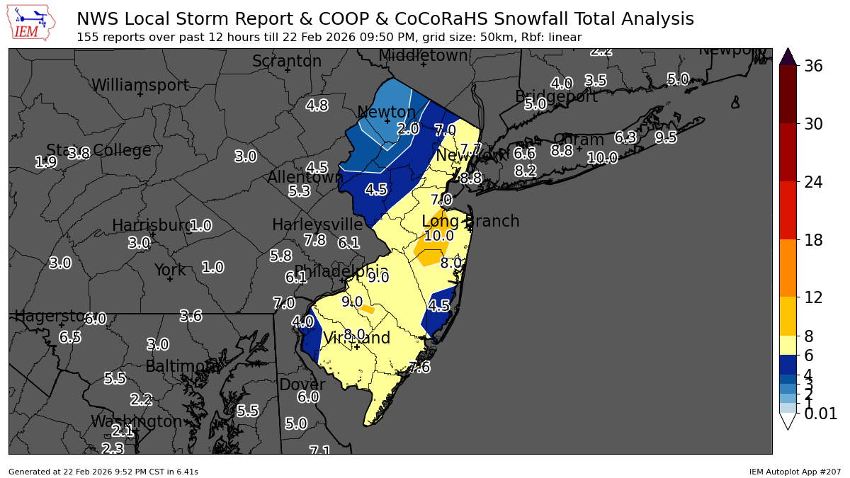 11 inches here 30F (Monroe,NJ) CNJ S-Middlesex