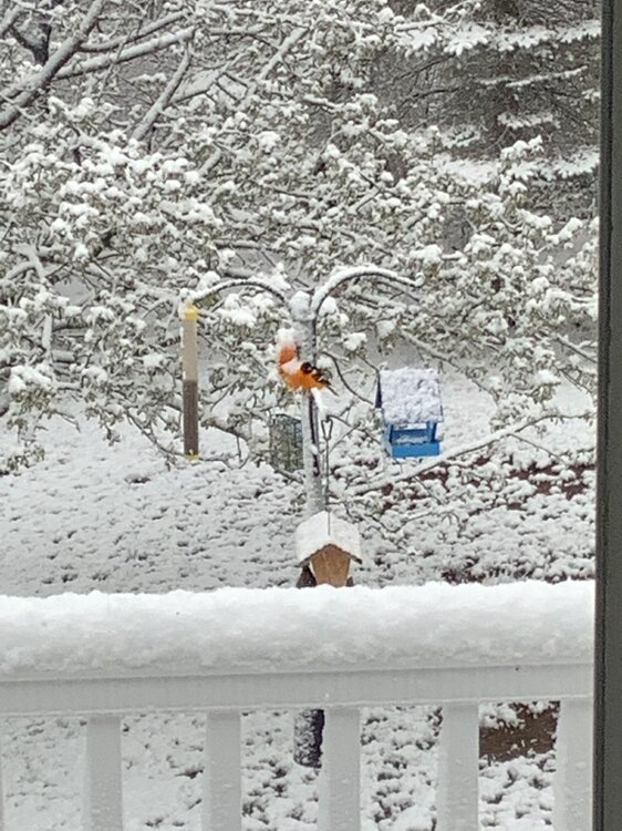 Probably a good 8-14” here. Hopefully we lost most of the vulnerable limbs already in the last few events. My biggest concern is limbs snapping on the fruit trees. I may need to shake them off a couple of times mid event.
