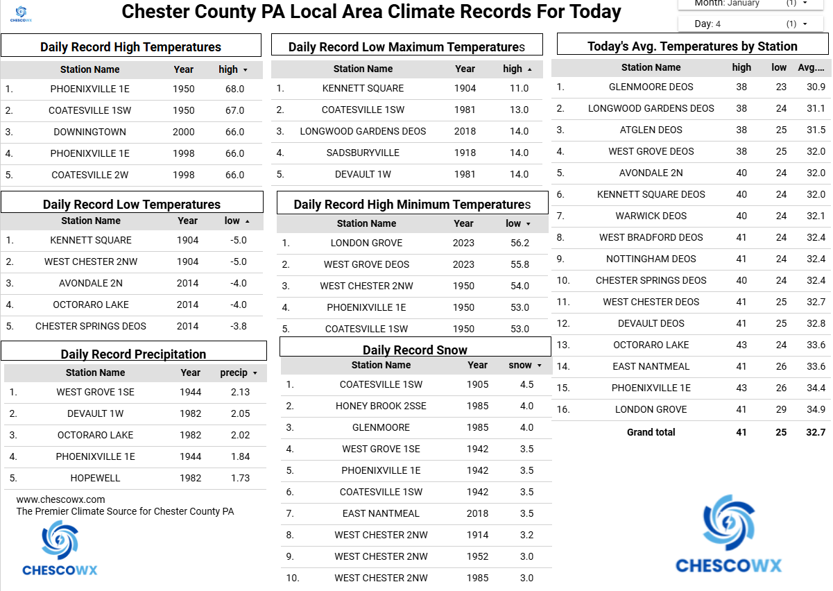 Still crunching the annual climate numbers for the other Chesco stations but at least here in East Nantmeal our average temperature for 2025 was 52.4 degrees this is the 5th coldest year in my 22 years at this location and the coldest since the 51.7 in 2013. -