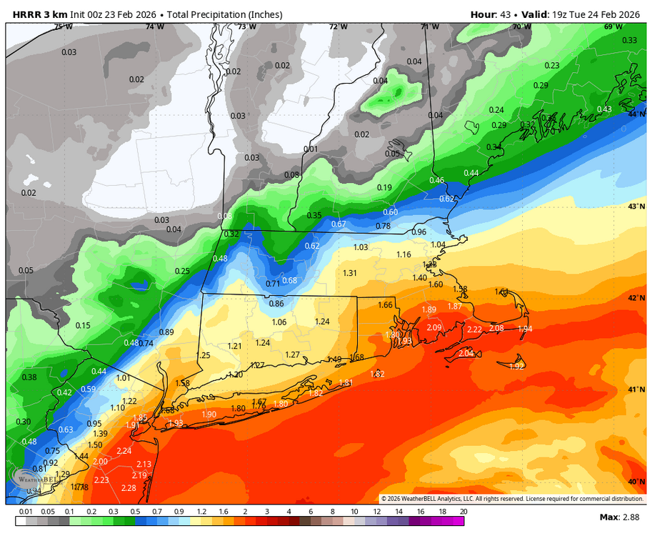 You guys get smoked before that though… that’s just a snapshot to show where the HRRR thinks the western band ends up. S.CT looks like it rocks several hours earlier than the BOS crowd. -