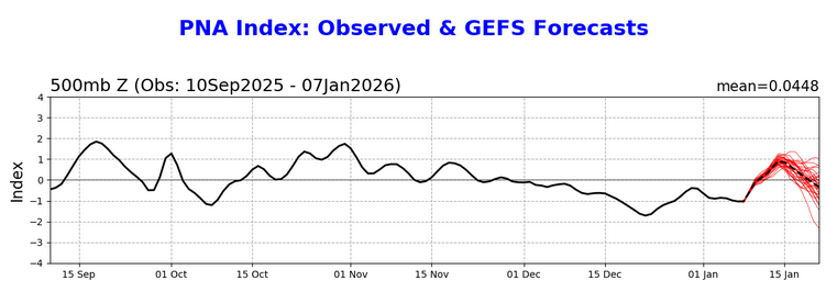 Several thoughts as we move deeper into January. La Niña is clearly waning. Region 3.4 has seen some recent warming. But La Niña is still having an influence. In a visible sign that there remains ocean-atmosphere coupling, the AAM is negative and forecast to remain negative for at least the next 7-10 days. As the La Niña wanes, its influence will also fluctuate. Fading weak La Niña events have mixed outcomes for February. This mixture of outcomes suggests that atmospheric patterns begin to carry greater weight as ENSO forcing weakens. By the end of the week, it will become clearer whether the PNA will move toward a regime change or a highly unusual brief PNA+ period followed by a resumption of a mainly negative PNA. By that time, the teleconnection guidance will be in its high-skill forecasting range. The base case remains a turn toward colder but not necessarily severely cold weather during the second half of January. The southern tier may still see only temporary intrusions of cold air. Snowfall prospects for the East Coast will depend heavily on the evolution of the PNA. In any case, at least through mid-month, significant snowfalls are unlikely for the East, as well as parts of the Great Lakes Region. -