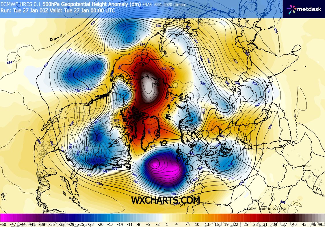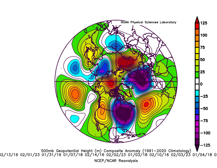 I think NYC has a shot at a 5° or colder reading this Friday and Saturday. Temperatures this cold over the last decade have been few and far between. There have only been 5 days getting this cold over the period. The last time was back in early February 2023. The one feature all these very cold days had in common was a strong block north of Alaska. The current block is approaching records near -5 SD which will drive a lobe of the TPV into the Northeast. NYC 5° and colder days since 2016 2-4-23…..3° 1-31-19…..2° 1-21-19….4° 1-7-18……5° 2-14-16….-1° 500 mb composite of dates Current pattern and forecast