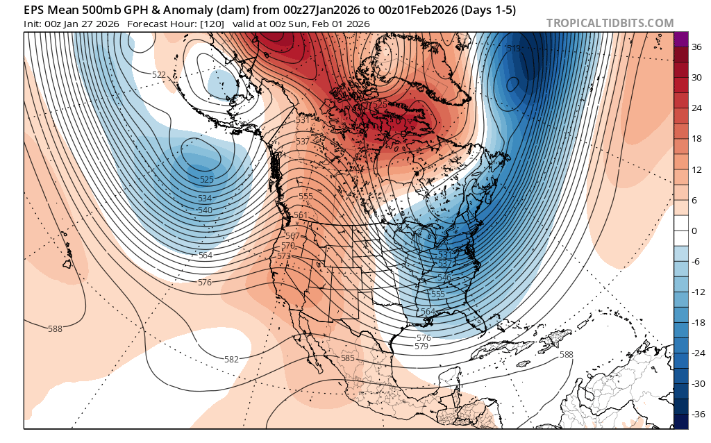 Following the snowstorm this weekend I would like to see the ridge axis out West back off a little to allow coastal development closer in instead of further offshore like the EPS and EPS-AIFS into next weekend. Many times we get a snow event at the start of a pattern and at the end. So it looks like the snow potential will continue into at least early or perhaps mid-February with the exact storm dates to be determined later. I am happy that the long advertised more active STJ pattern came to pass as there is only so much snow we can get exclusively from Northern Stream disturbances here.