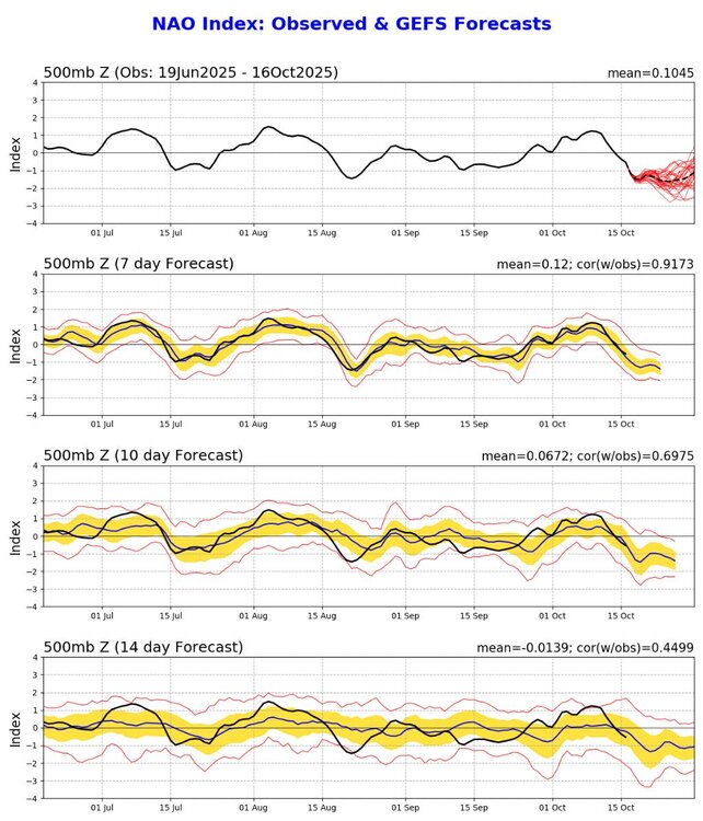 The models are going to be catching onto this and yes we are in the latter part of the season when this matters. Im already seeing multiple cold fronts on the GFS and the Euro. The NAO in particularly is impressive for any time of the year. We will see what happens but all good signs to turning colder, getting our first frost, first freeze, and especially getting towards the end of the month possibly our first flakes. Stay tuned. Sent from my SM-G998U using Tapatalk