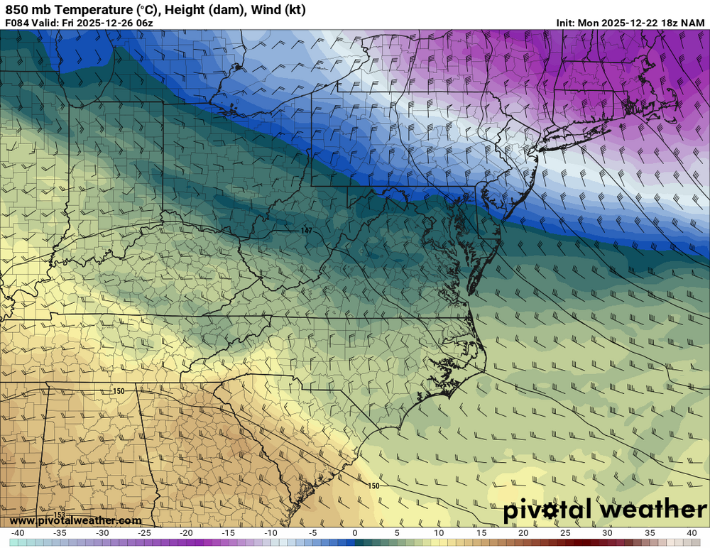 Fwiw, Nam is the coldest of it, the Euro and Gfs. Euro is a little cooler than half way between the other 2. That's as of 84hrs on the 18z runs. -