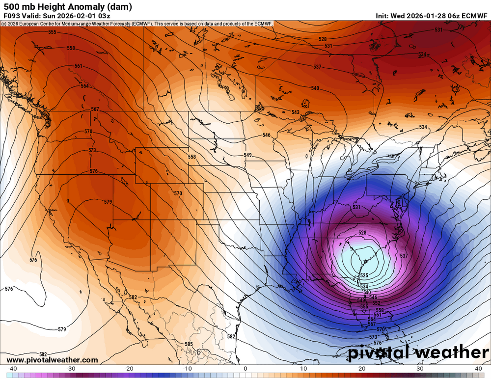And I would venture to say that it's because of the historic cold pressing that it is south. There are a few of our major snowstorms that were proceeded by historic cold, but 90%+ were not as overwhelming as this air mass. -