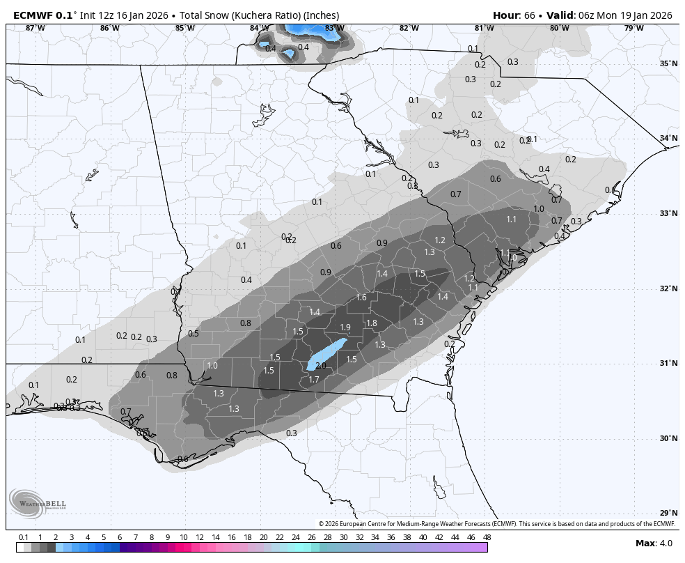 The “Bleaklies” (thanks, ColdRain, for coming up with that hilarious nickname) are almost the polar opposite of last year for the SE at this time. Related to your mention of the Euro, one “bleak” (Jan 12-18) has gone from this encouraging run just two days ago: To the commode today:
