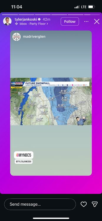 St Johnsbury is somehow the current accumulation leader in New England with 8.6". I don't think a single model had anything close to that outcome