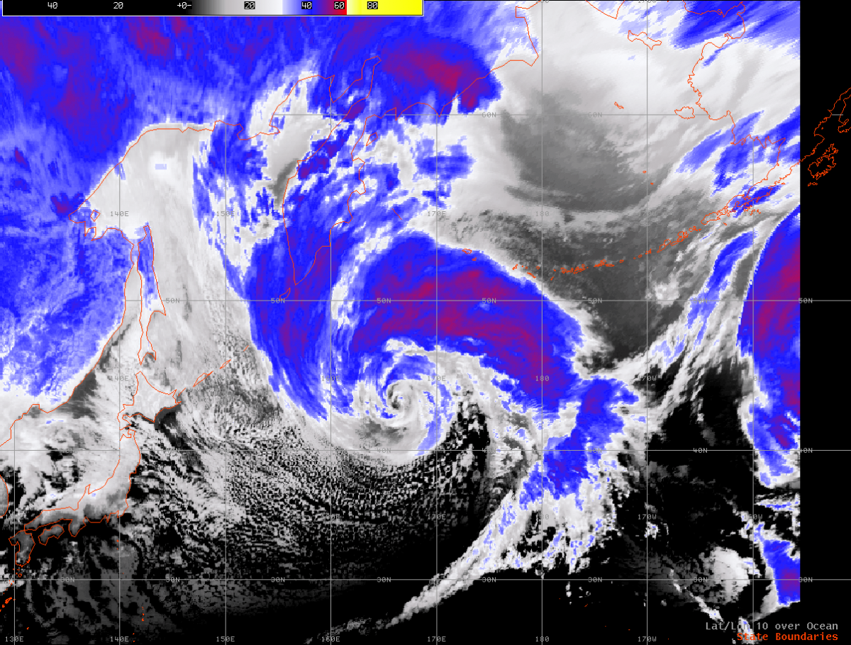 baroclinic_instability Posted January 22, 2013 Share Posted January 22, 2013 The GFS is dropping the pressure down to 920 hpa. Here is another shot of the Pacific beauty I took when it was approaching our far western Aleutians zones: What was particularly impressive about the N Pac bomb was the latitude it formed at. Link to comment Share on other sites More sharing options...