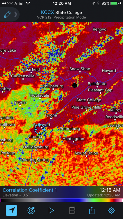 MAG5035 Posted December 12, 2016 Author Share Posted December 12, 2016 3 minutes ago, Winter Wizard said: Closing in on 2 inches in downtown State College, still moderate snow. Changeover line just passed Lewistown so we probably flip in the next hour or two. It's alternating between snow and sleet down here (I'm about 30 miles down I-99 from UNV). It seems like it will hold up there for awhile but you can also see the mixing line working into Clearfield county from the west and southwest. The CC dual pol is really showing the line pretty well. Link to comment Share on other sites More sharing options...
