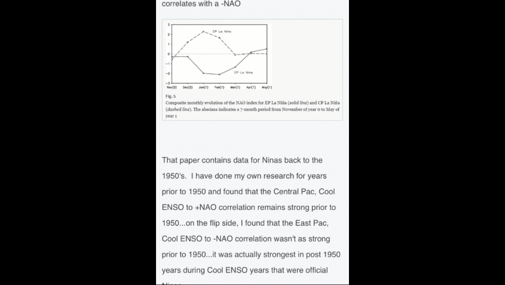 Don't forget to mention that the correlation is not as strong with weak Ninas. Plus, most winters had at least one decent -NAO month.