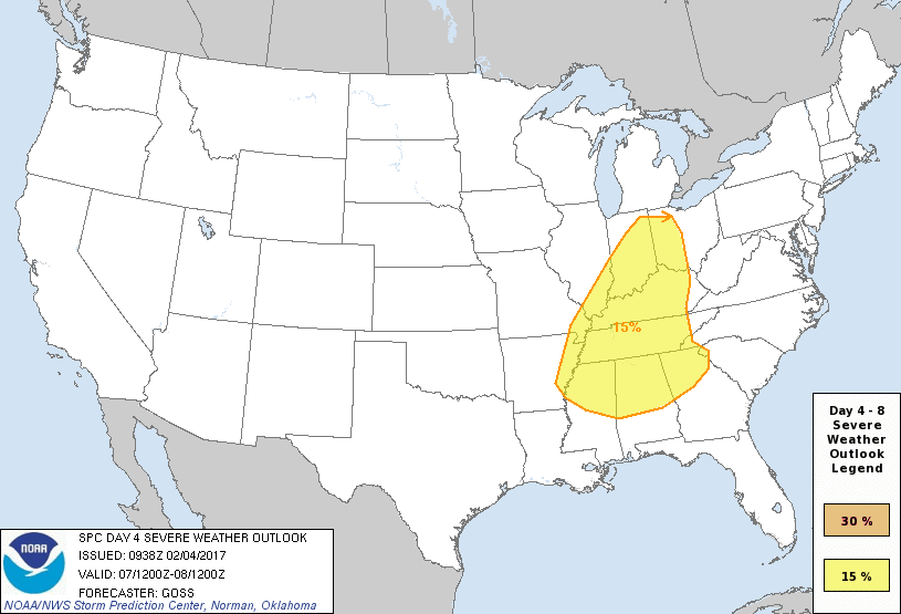 Yep, that SPC svr outlook was from this Sat. morning  analysis.  I would expect them to chop off a lot of it on the northern end given today's model runs with weaker low pressure than originally thought and lack of good directional shear in low levels.