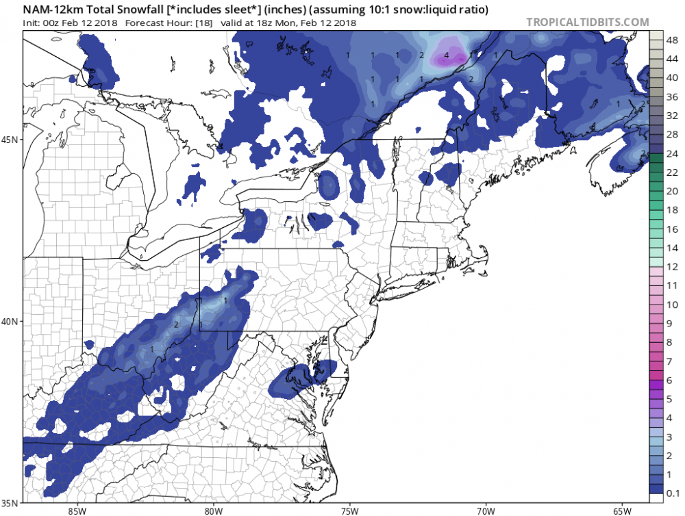 north pgh Posted February 12, 2018 Author Share Posted February 12, 2018 Here is last nights 18 and 0Z NAM. Link to comment Share on other sites More sharing options...