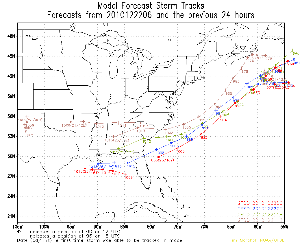 needbiggerboat Posted December 22, 2010 Share Posted December 22, 2010 Looking ahead to the 12z gfs, here are the forecasted primary low tracks from the previous four runs, for reference: Link to comment Share on other sites More sharing options...