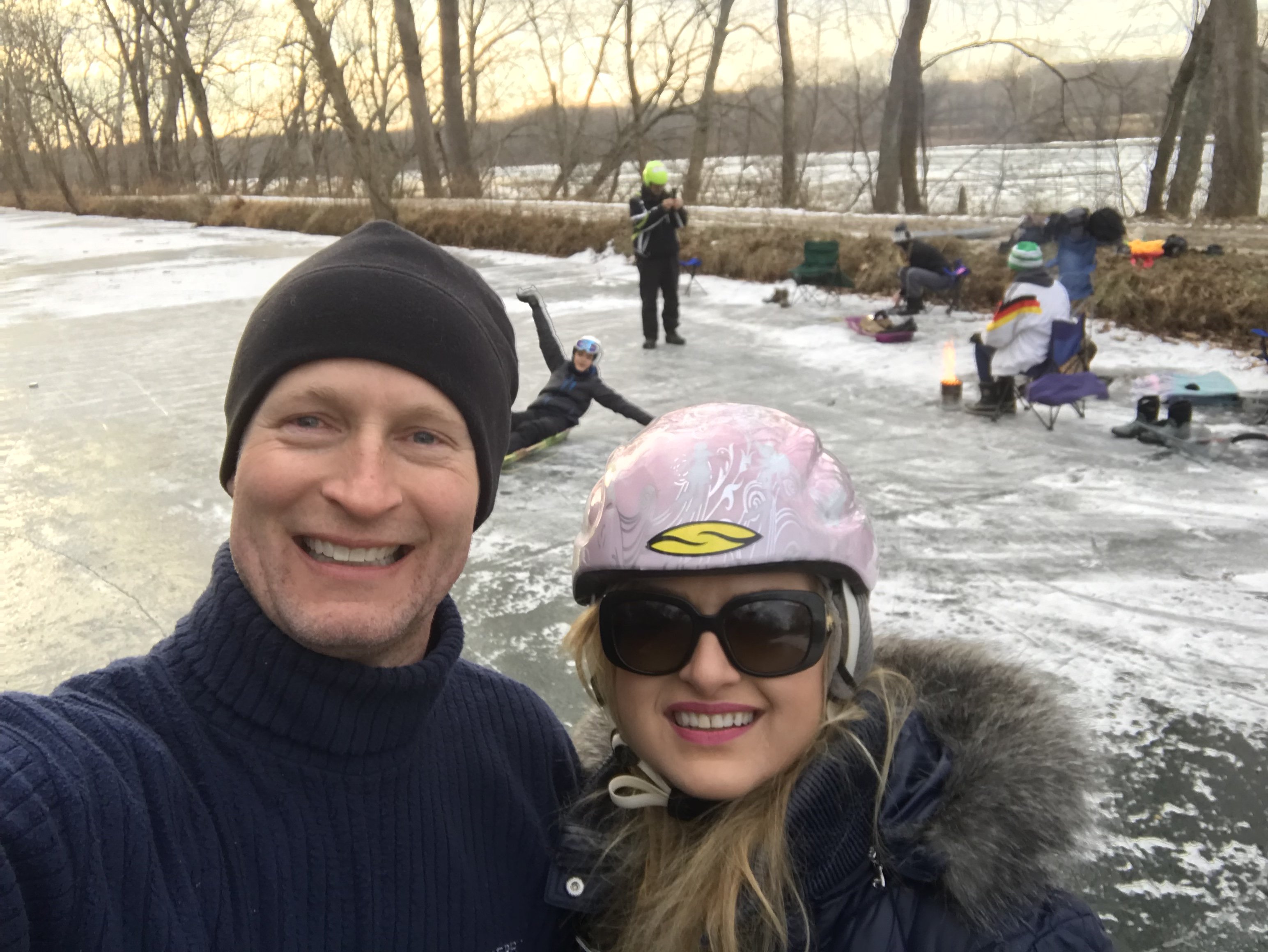 Sure did. It was glorious; 19°F, the ice was 8 inches thick and a beautiful defused sunlight shining through the overrunning cirrus.  First picture is some of us chilling by a roaring fire and the second is of me and my twin sister.