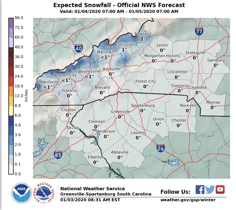 Not that impressive this weekend maybe an inch or 2 in favored areas on the border. Next week could be a bit better for upslope areas but doesn't look that great right now. If it doesn't turn around in late Jan or Feb this winter may turn out to be one of the all time least snowy. Even places like Beech and Mt Mitchell have barely seen half a foot all season.