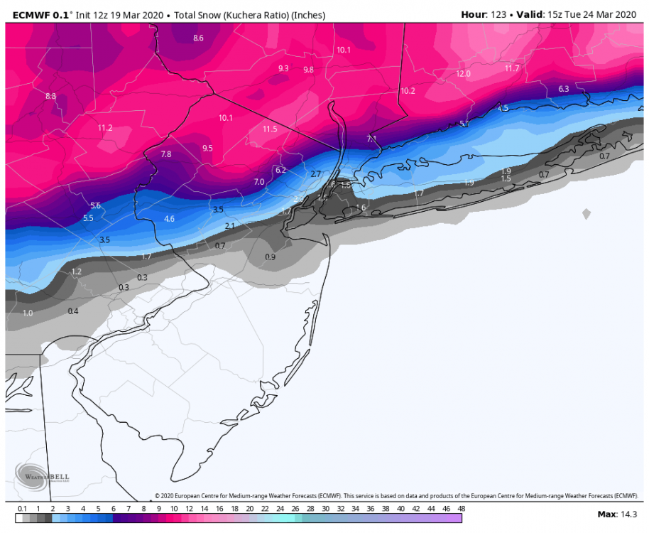 donsutherland1 Posted March 10, 2020 Share Posted March 10, 2020 Temperatures again soared into the 60s across the Middle Atlantic and southern New England regions today. An extended period of generally above to much above normal temperatures is underway. The warmth should continue until at least the closing 7-10 days of March. During this time, any intrusions of cold air should be brief and limited in magnitude. Winter 2019-2020 became the 9th winter on record that saw New York City receive less than 6" seasonal snowfall through March 10. Mean total snowfall for the 10 prior cases was 6.3" vs. the historic mean figure of 28.8". In addition, 88% of such winters wound up with less than 10" seasonal snowfall vs. 6% of winters in the historic record. 100% of such winters wound up with less than 20" seasonal snowfall vs. 31% of winters in the historic record. The snowiest case from those prior winters was 1991-92 with 12.6" seasonal snowfall. Based on the historic data, no significant snowfalls (6" or more) are likely in the major Middle Atlantic cities (Baltimore, New York City, Newark, Philadelphia, and Washington, DC) through the remainder of the 2019-2020 snow season. There is a greater but still low probability for Boston to see such a snowstorm. As a result, New York City will very likely finish winter 2019-2020 with less than 10" snow for the first time since winter 2011-2012 and for only the 10th time on record. Snowfall records go back to winter 1868-1869 (when 25.5" fell from January-March 1869). The ENSO Region 1+2 anomaly was +1.1°C and the Region 3.4 anomaly was +0.5°C for the week centered around March 4. For the past six weeks, the ENSO Region 1+2 anomaly has averaged +0.58°C and the ENSO Region 3.4 anomaly has averaged +0.45°C. Neutral ENSO conditions will likely prevail through March. The SOI was -7.90 today. Today, the preliminary Arctic Oscillation (AO) figure was +3.597. No significant stratospheric warming is likely through March 17, but the upper stratosphere above 5 mb will likely be warm. Wave 2 activity will likely be low. Overall, most of the stratosphere is forecast to remain cold on the EPS through mid-March. On March 9, the MJO was in Phase 5 at an amplitude of 1.498 (RMM). The March 8-adjusted amplitude was 1.904. A sizable majority (>80%) of years during which the AO has been, on average, strongly positive during the first 15 days of February were followed by a warmer than normal March. The preliminary February 1-15 AO average was +2.758. Only 1989 (+3.336) and 1990 (+2.948) had higher AO averages during this period. Recent rapid warming in ENSO Region 1+2 has also typically preceded a warmer than normal March and spring in the Middle Atlantic region. A warmer than normal March and spring remain the base case. The ECMWF monthly and seasonal guidance initialized on March 1 shows a much warmer than normal March. It also shows a warmer to much warmer than normal spring. February 2020 saw the ENSO Region 1+2 anomaly increase by more than 0.50°C. Such a development has typically occurred before a warmer than normal summer. In all such cases, a warmer than normal spring was followed by a warmer than normal summer. Therefore, a warmer than normal summer is currently more likely than not. Should Spring wind up warmer than normal, a warm or even hot summer will be very likely. Based on sensitivity analysis applied to the latest guidance, there is an implied 90% probability that New York City will have a warmer than normal March. 1 Link to comment Share on other sites More sharing options...