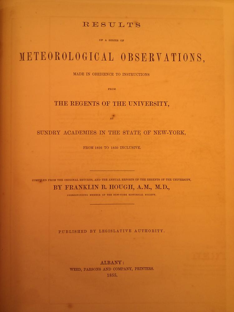 Results of a Series of Meteorological Observations… Albany: Weed Parson & Company, 1855. Erasmus Hall High School Records, MS 201