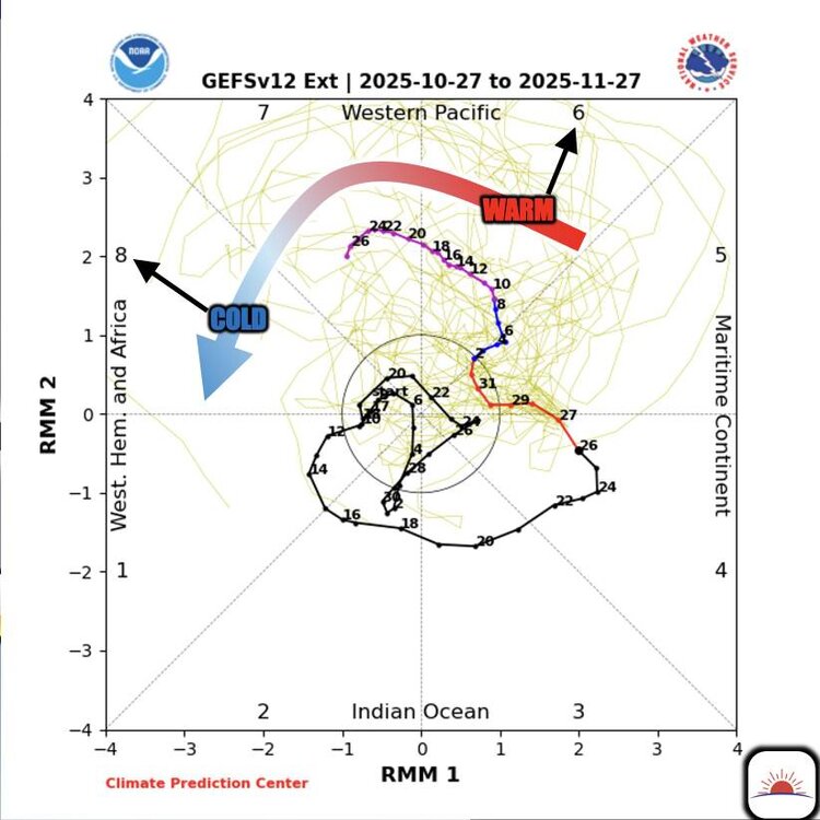 Met1985 Posted 7 hours ago Share Posted 7 hours ago I got this from Bam weather but it's being talked about currently as we head into Met winter. This would be perfect heading into the cold season. Just 1 variable but a nice one.Watching the MJO closely ahead."Phase 6" through mid-NOV offers an overall warmer outlook.However, especially as we transition to "phase 8", cooler temps will be the theme. Key will be timing but below normal temps loom to open up DECSent from my SM-G998U using Tapatalk 1 Link to comment Share on other sites More sharing options...