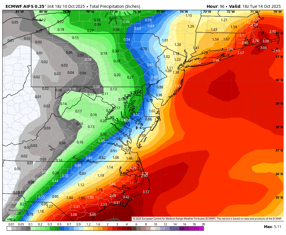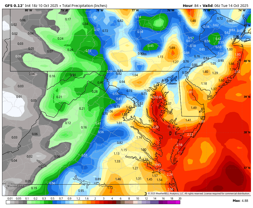 yoda Posted 3 hours ago Share Posted 3 hours ago SHORT TERM /6 AM SATURDAY MORNING THROUGH SUNDAY NIGHT/... A coastal low pressure system will take shape off of the Southeast U.S. Coast tonight through midday Saturday, before moving north along the Eastern Seaboard Saturday afternoon through Sunday night. An occasional shower or sprinkles could evolve Saturday into Saturday evening from southeast to northwest across the region. A light to moderate steadier rainfall could arrive in several bands overnight Saturday through Sunday night as the coastal low gets closer to the mid- Atlantic region and nearly stalls. Rain amounts could average 1 to 2 inches along and east of a line from Hagerstown to Warrenton to Fredericksburg. To the west of this line, one-half to three-quarters of an inch. The heaviest rainfall could reach the 3 to 3.5 inch amounts in places. The interaction between the departing area of high pressure off the New England Coast and the coastal low pressure system will result in stronger northeast winds to develop and persist through much of the weekend. An elongated trough of low pressure, accompanied by a few mid-level disturbances, will help to tighten the pressure gradient Saturday through Sunday to result in stronger northeasterly winds. Northeast winds will increase late Saturday night through Sunday afternoon with sustained winds of 10 to 20 mph gusting 25 to 30 mph. Winds could gust 35 to 40 mph over land within a several miles of the Chesapeake Bay shoreline. A big uncertainty remains in the track and intensity of coastal low, simultaneously, as it moves up the coast. Also, to make matters even less certain, is the interaction or phasing of the mid- level disturbances with the coastal low and the exact location of that occurrence. && .LONG TERM /MONDAY THROUGH FRIDAY/... Breezy and wet conditions likely continue into Monday, and perhaps even into the first half of Tuesday, as the coastal low meanders off the Delmarva Peninsula before eventually pulling further offshore on Tuesday. There seems to be a decent amount of agreement that precipitation should taper off by Tuesday afternoon as the low shift further to the east. However, it remain close enough that winds may still remain elevated for a couple days thereafter. 2 Link to comment Share on other sites More sharing options...