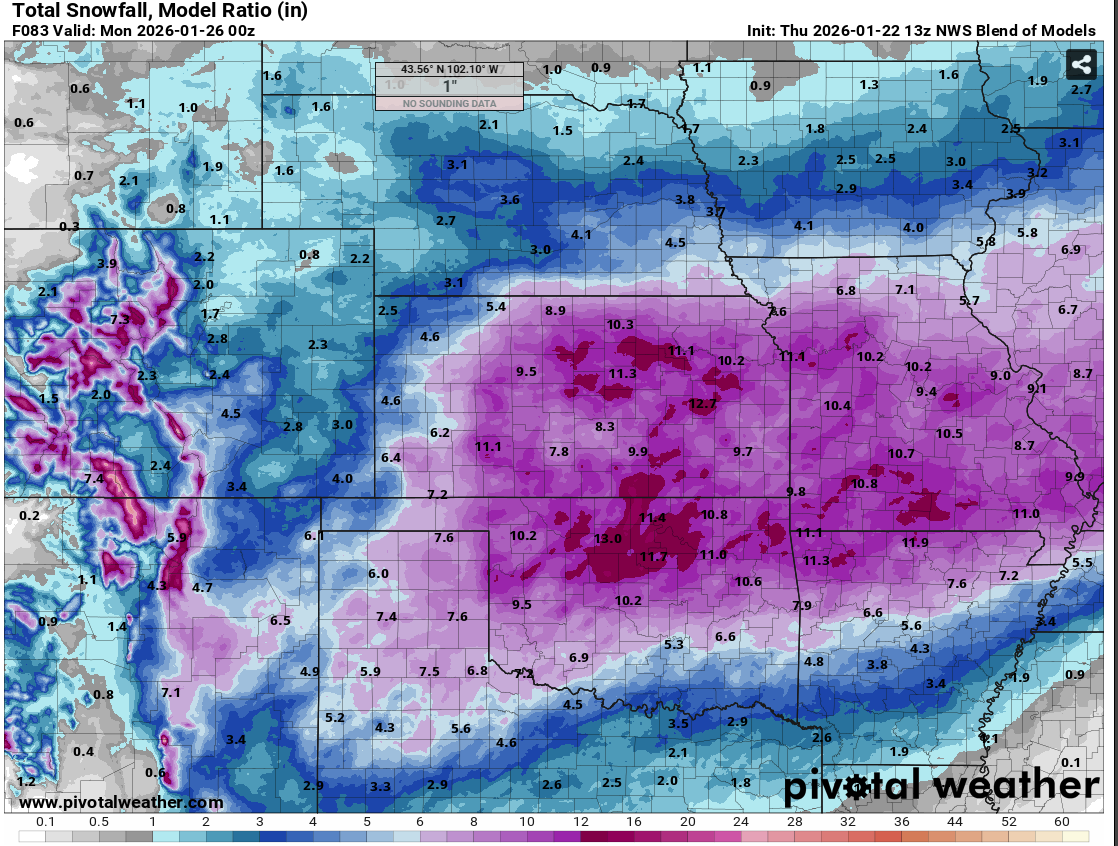 RocketWX Posted 2 hours ago Share Posted 2 hours ago Here is the latest NBM run. Still throwing out hefty totals for pretty much everyone here. Not shocking since models have yet to back down on totals. 1 Link to comment Share on other sites More sharing options...