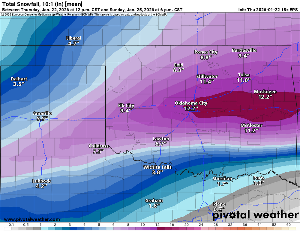 andyhb Posted 15 minutes ago Share Posted 15 minutes ago Monstrous storm for OK on the 18z Euro, particularly the I-44 corridor. 1.2-1.5" liquid for both metros with temps in the single digits on the backside. 18z EPS is also extremely impressive. Link to comment Share on other sites More sharing options...