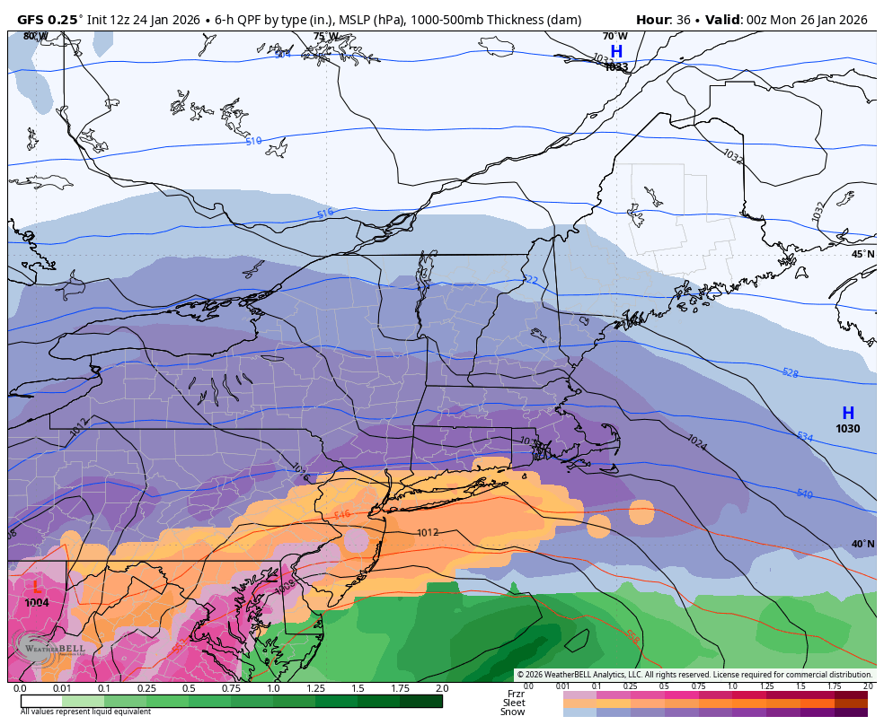 Blizzard of 93 Posted 17 minutes ago Share Posted 17 minutes ago 18 minutes ago, canderson said: I tend to think the NAM is right. It’s already sleeting in the Ozarks, which was not forecast to flip for many hours. I’m going to downgrade my MDT prediction to 8.75”. Precip overall back in OK/AR/TX has underperformed so far. Still a great, great storm. But a far cry from 16” of fluff. SPC disagrees… Mesoscale Discussion 0043 NWS Storm Prediction Center Norman OK 0853 AM CST Sat Jan 24 2026 Areas affected...northeast TX...southern AR...northern LA...western MS Concerning...Winter mixed precipitation Valid 241453Z - 242000Z SUMMARY...Moderate to heavy freezing rain and sleet are expected to persist across the Ark-La-Tex to Ark-La-Miss regions into early afternoon. Liquid-equivalent precipitation rates of a tenth to quarter-inch per hour should be common, locally up to a half-inch per hour. DISCUSSION...A swath of moderate to heavy mixed precipitation is ongoing across east TX and the Ark-La-Tex. Surface observations confirm hourly precipitation rates of .10-.25 in/hr are common, up to around .50 in/hr. 12Z guidance is rather consistent in indicating this swath of precip persisting through at least early afternoon, gradually shifting east-northeast amid rather pronounced low-level warm theta-e advection. A classic freezing rain to sleet sounding was sampled at 12Z in SHV. This type of thermodynamic profile should continue to steadily push southward in northern LA. Farther east, the surface freezing line should only drift to nearly stall across western MS into the early afternoon. ..Grams.. 01/24/2026 Link to comment Share on other sites More sharing options...
