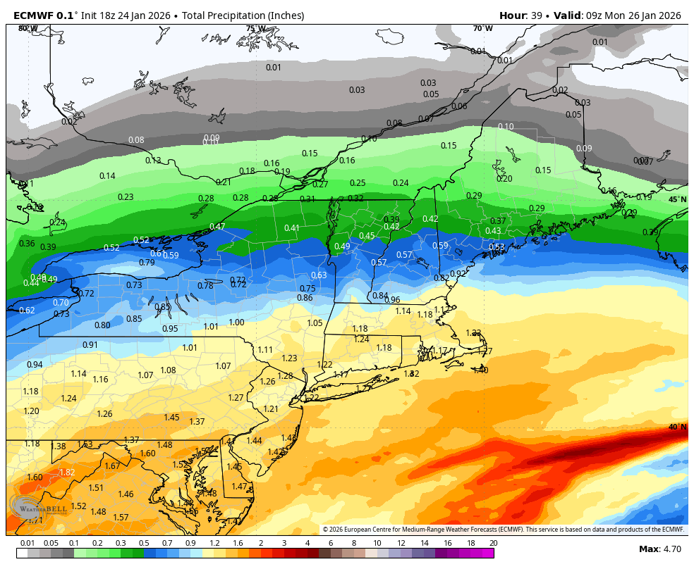 Blizzard of 93 Posted 54 minutes ago Share Posted 54 minutes ago 18z Euro only mixes turnpike & south by 0z & then mix creeps slightly further north by tomorrow evening as things begin to wind down. Link to comment Share on other sites More sharing options...