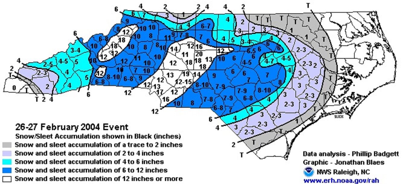 GaWx Posted 2 hours ago Share Posted 2 hours ago 1 hour ago, Orange county said: Good point Of course they typically happen at 35 degrees. maybe 33 SLOP Here are the 8 big storms I’m referring to from 2/25-3/3: only 2 of them (25%) were slop storms as these were mostly very high impact storms -3/2-3/1960: 6.5” at RDU with high of only 29; 6.1” at GSO with high of only 27 -2/26/1963: 6.9” RDU with still 3” on ground 2/28 “An estimated 100 people were hospitalized due to weather-related traffic accidents and pedestrian falls.” https://products.climate.ncsu.edu/weather/winter/event/?e=25#:~:text=The%20first%20heavy%20statewide%20snowfall,traffic%20accidents%20and%20pedestrian%20falls. -3/1/1969: 9.3” RDU/10.7” GSO: snowcover of 2”+ through 3/4 -3/1-2/1980: 11.1” RDU and 7.9” GSO; frigid with teens during snow; 5-9” still on ground 3/4! -2/26-27/2004: “The storm, which brought heavier 12–18 inch totals to the Piedmont/Triad area, caused significant disruption, with cold temperatures allowing the snow to stick, causing hazardous travel condition” -2/26/1952: RDU 3.5”/GSO 6” slop storm -2/27/1987: 5.2” RDU/7.5” GSO slop storm -2/25-26/2015: 5.1” RDU/6.4” GSO with 1-2” still on ground 3/1 “The heavy, wet snow caused extensive power outages in many of the hardest hit counties, with some power outages extending beyond 24 hours.” https://products.climate.ncsu.edu/weather/winter/event/?e=604 1 Link to comment Share on other sites More sharing options...
