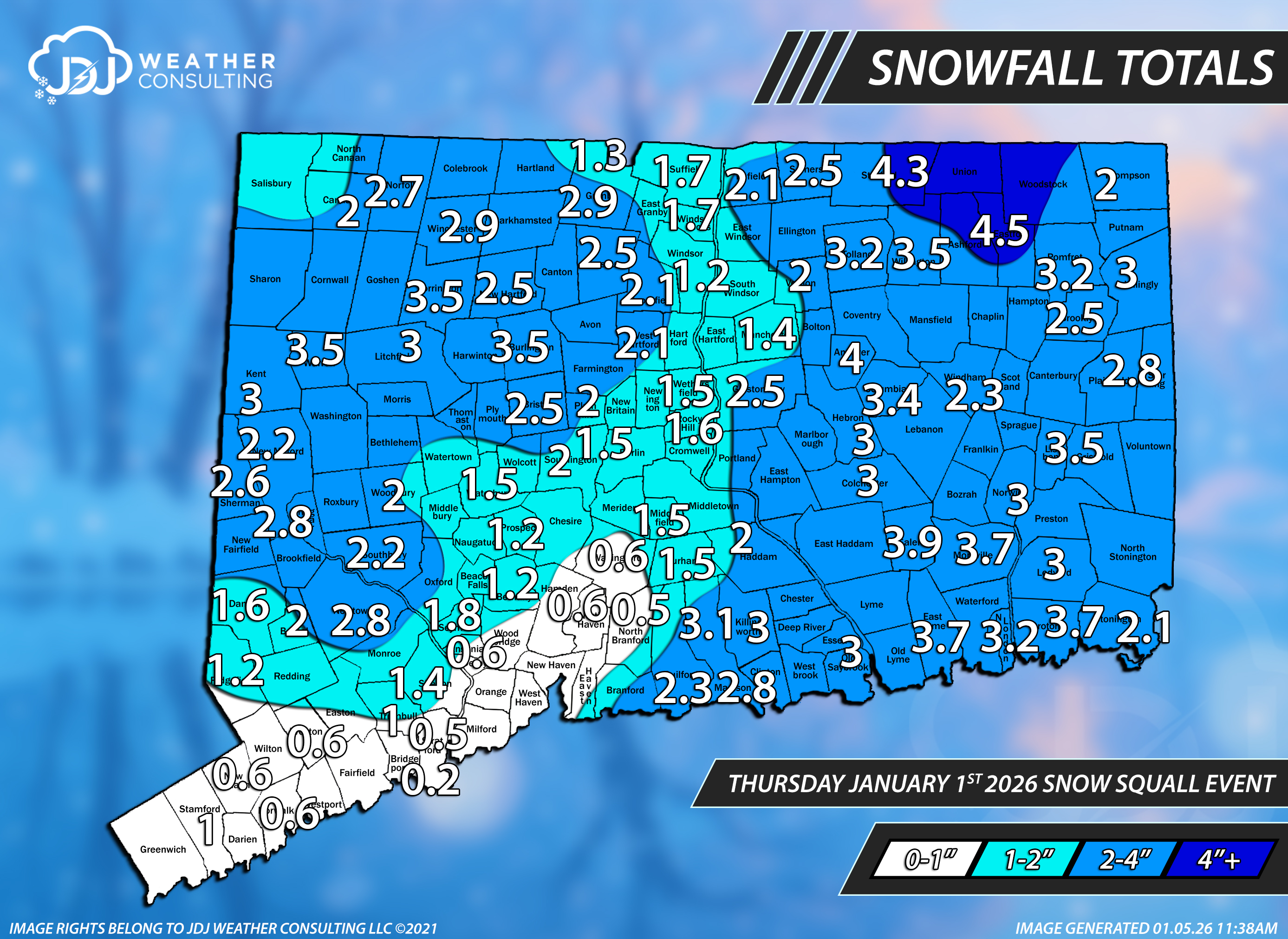 The 4 Seasons Posted Monday at 06:02 PM Share Posted Monday at 06:02 PM Final snowfall totals for the NYE/Day light snow & snow squalls Link to comment Share on other sites More sharing options...