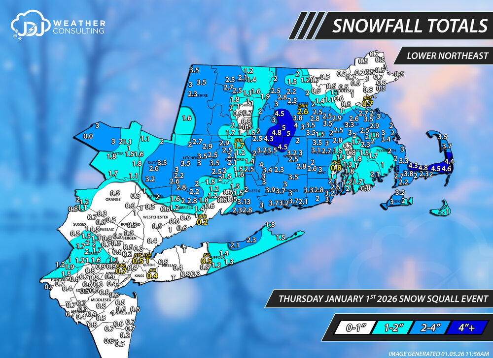 The 4 Seasons Posted 12 hours ago Share Posted 12 hours ago 4th 3"+ event of the season is now up. Pretty sick radar animation. I was able to use 5min increments for this instead of the usual 10 min because the total duration was short so the file size wasn't too big. Still can't attach it here for some reason though. https://www.jdjweatherconsulting.com/jan-1-2026 2 Link to comment Share on other sites More sharing options...