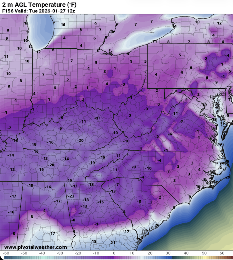 Thrasher Fan Posted 1 hour ago Share Posted 1 hour ago These are 7AM Est Tuesday temps as depicted on the 0z GFS. Not likely to verify but should provide a small glimpse into the blocking that is sliding into place. 2 Link to comment Share on other sites More sharing options...
