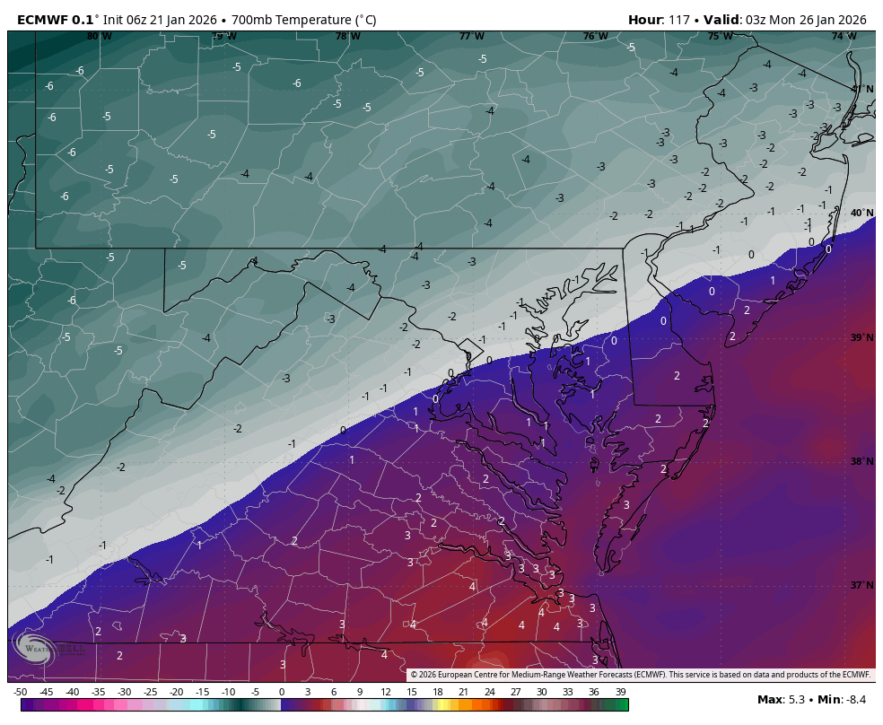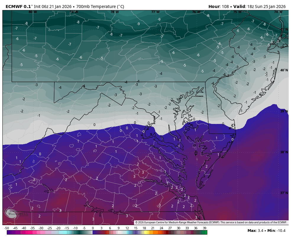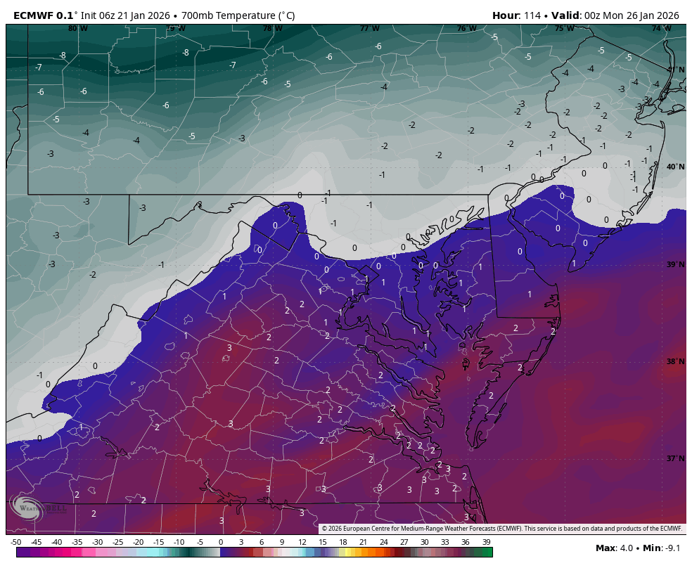 The Euro, verbatim is a near perfect track for I-95. We kiss the mixing line and max out the snow totals. But just 24 hours ago we were worried about supression.