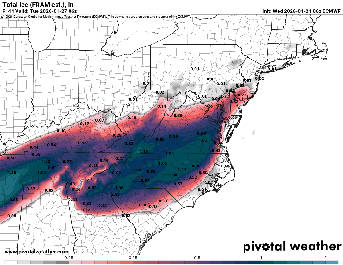 If I'm at 20.6" I'll tolerate a bit of ice. Whatever falls will become a glacier for at least two weeks maybe three.