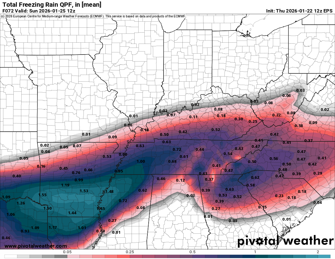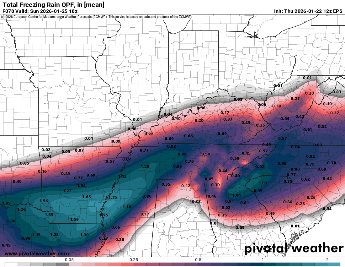 Wurbus Posted 1 hour ago Share Posted 1 hour ago .DISCUSSION... Issued at 1225 PM EST Thu Jan 22 2026 A significant winter storm is expected to impact the Southern Appalachians and Tennessee Valley, and much of the south and central CONUS, through the weekend. We are currently in a colder, longwave troughing pattern across the Eastern CONUS with ridging across the eastern Pacific. A northern stream shortwave will begin to phase with an ejecting southern vort max on Sunday resulting in a quickly intensifying surface low pressure system that will move northeast across the East Coast. Strong high pressure to the north keeps us dry today and Friday, but increasing southerly flow aloft will result in increased cloud cover late Friday into Saturday morning. As isentropic lift increases across the region, light precipitation will be possible Saturday morning, but dry air at the surface will limit any accumulating snow or sleet. By the afternoon, the surface becomes saturated with wintry precipitation expected to begin accumulating across the region. To begin, areas near Interstate 40 and northward are expected to have the entire atmospheric column below freezing which will result in some potential snow to start on Saturday afternoon. As southerly flow and WAA continues to warm temperatures between 850mb and 800mb, temperatures increase to around +2 to +3 degC by late Saturday night and Sunday morning. This will result in a lot of sleet and a transition to freezing rain across the region. In addition, the southerly flow and subsidence along the western slopes of the Appalachians will result in warming surface temperatures across the western slopes of the mountains with areas around Gatlinburg to Newport to Greeneville likely warming up above freezing pretty quickly on Saturday night. This will limit ice accumulation for these areas. Across the valley and plateau, there are several variables that will determine total snow, sleet, and freezing rain accumulation. The first variable is the cold air aloft. Most of the snow will be limited to areas near the Kentucky state line, and snow totals will likely be compacted by sleet and freezing rain mixing in on Saturday night. Further south, sleet and freezing rain will be the predominant precipitation types on Saturday afternoon and night. The second uncertain variable is the warm nose temperature around 800mb overnight; It will be near the sleet/freezing rain cutoff. We likely get a mix of both sleet and freezing rain for much of central East Tennessee, but depending on the exact mix, we may have significantly more ice accretion due to freezing rain or significantly more sleet (and less ice accretion). In addition, the third variable is how cold are surface temperatures and where do we wet bulb? Model guidance has significant variability in dew points ahead of the precipitation, but based on the consensus of most guidance, we should be cold enough in the mid 20s to get a decent amount of ice accumulation before temperatures begin to warm into Sunday morning. Overall, a large portion of the region will likely see a trace to a half-inch of sleet and one-quarter to one- half inch of ice accumulation. Southern areas near the Georgia state line may only see a trace to one-tenth of an inch of ice before the transition to rain. The caveat across the south is the higher elevations around Chattanooga such as Signal Mountain, Mowbray Mountain, Lookout Mountain, and surrounding portions of the southern plateau may see higher ice totals up to around 0.5 inch. Still, even the lower amounts would cause significant travel impacts on Saturday evening through Sunday morning. This forecast is likely to change as we continue to refine the forecast with the most recent observations tonight and tomorrow, so please continue to follow the latest updates. Because of the uncertainty in precipitation types and amounts, we will continue with the Winter Storm Watch to message the risk of significant winter weather hazards, and we will plan on upgrades to warnings or advisories tonight or tomorrow when we are within 24 to 36 hours of the event beginning. On Sunday afternoon, the main 850mb low will be to our west with WAA finally warming most, if not all, areas above freezing. Temperatures will likely be slower to warm on Sunday morning across the valley compared to what deterministic models indicate because of the cold, dense air entrenched across the valley. WAA should finally win out by the afternoon across the valley, but it will take some time. By Sunday night, northwest flow returns with strong CAA and very cold air arriving through the night and on Monday. We may continue to see some orographic snowfall or rime ice across the northeast Tennessee mountains through Monday morning, but accumulations should be light. This very cold airmass will result in temperatures 20 to 25 degrees below normal on Monday. Monday night into Tuesday morning, temperatures drop down into the single digits for most locations with temperatures near or below zero across the higher elevations. Wind chill values across the higher terrain are forecast to be in the -5F to -15F range; however, calm winds across the lower elevations should mitigate the wind chill risk. Tuesday morning will be frigid across the region, though. As we move into mid-week, max temperatures begin to moderate but remain 10 to 15 degrees below normal on Tuesday and Wednesday. Another cold front will bring a reinforcing cold airmass by late next week with temperatures struggling to get above freezing next Thursday. 4 Link to comment Share on other sites More sharing options...