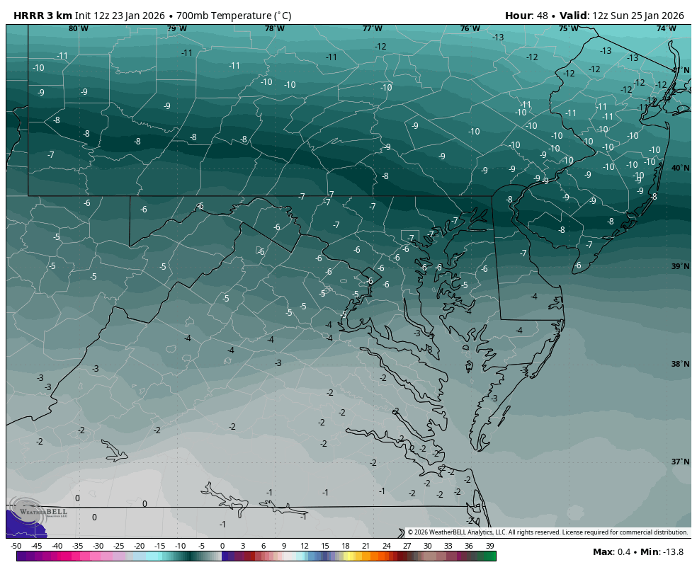 Weather Will Posted 1 hour ago Share Posted 1 hour ago 16 minutes ago, Ji said: the 850 maps dont matter bro....show the 700mb temps WB 12Z HRRR hr 48 700 mb 2 Link to comment Share on other sites More sharing options...