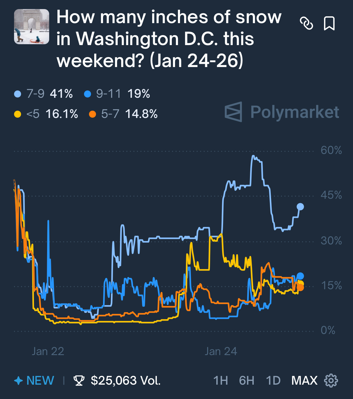 SnowDreamer Posted 1 hour ago Share Posted 1 hour ago For those of you that believe in the “wisdom of the crowd” for betting markets… People are putting money down on 7-9” for DC. 1 Link to comment Share on other sites More sharing options...