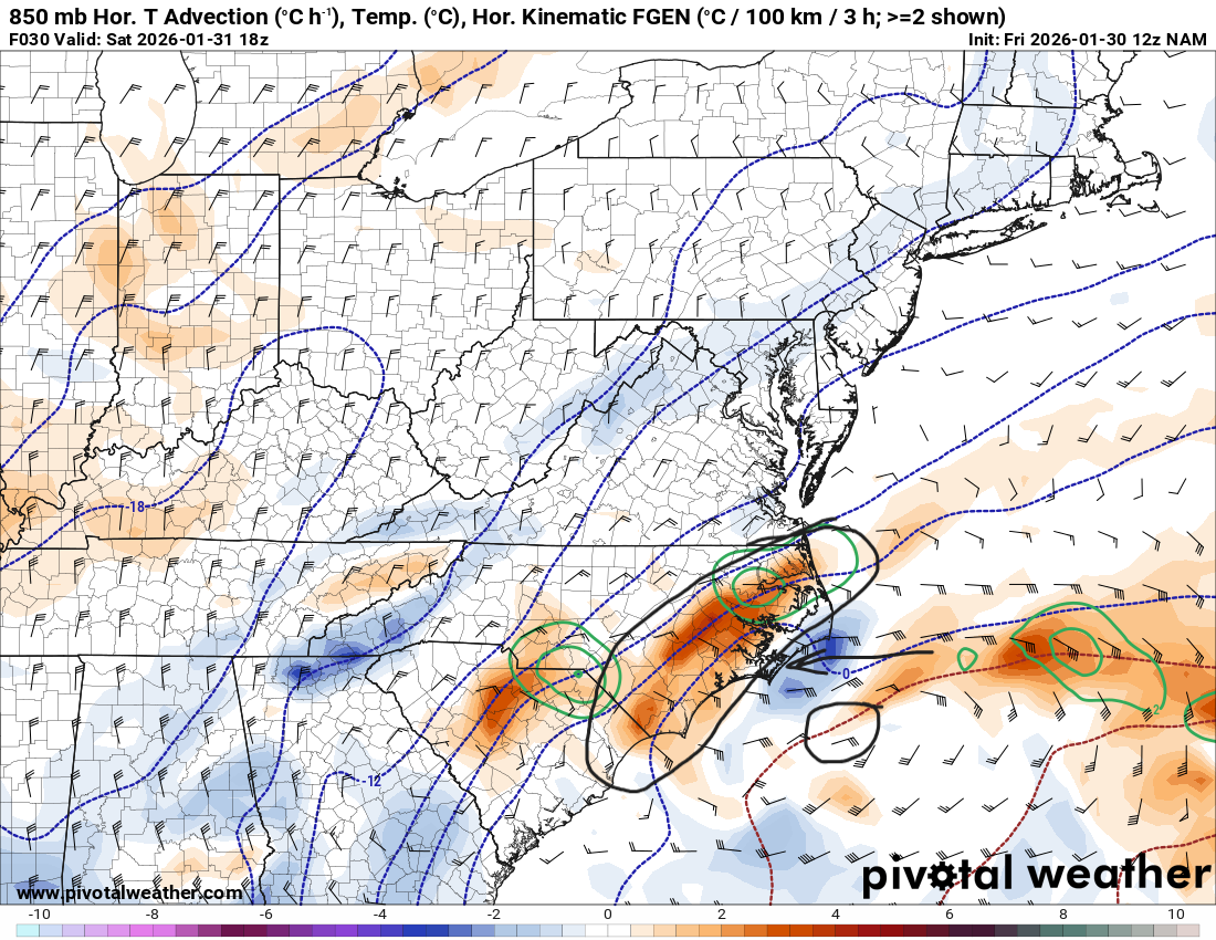 For sanity of us all don't really pay attention to the exact amounts on models exp the NAM. Just use them for the trends. The location of the bands is likely to be within the area of best forcing from the coastal formation.