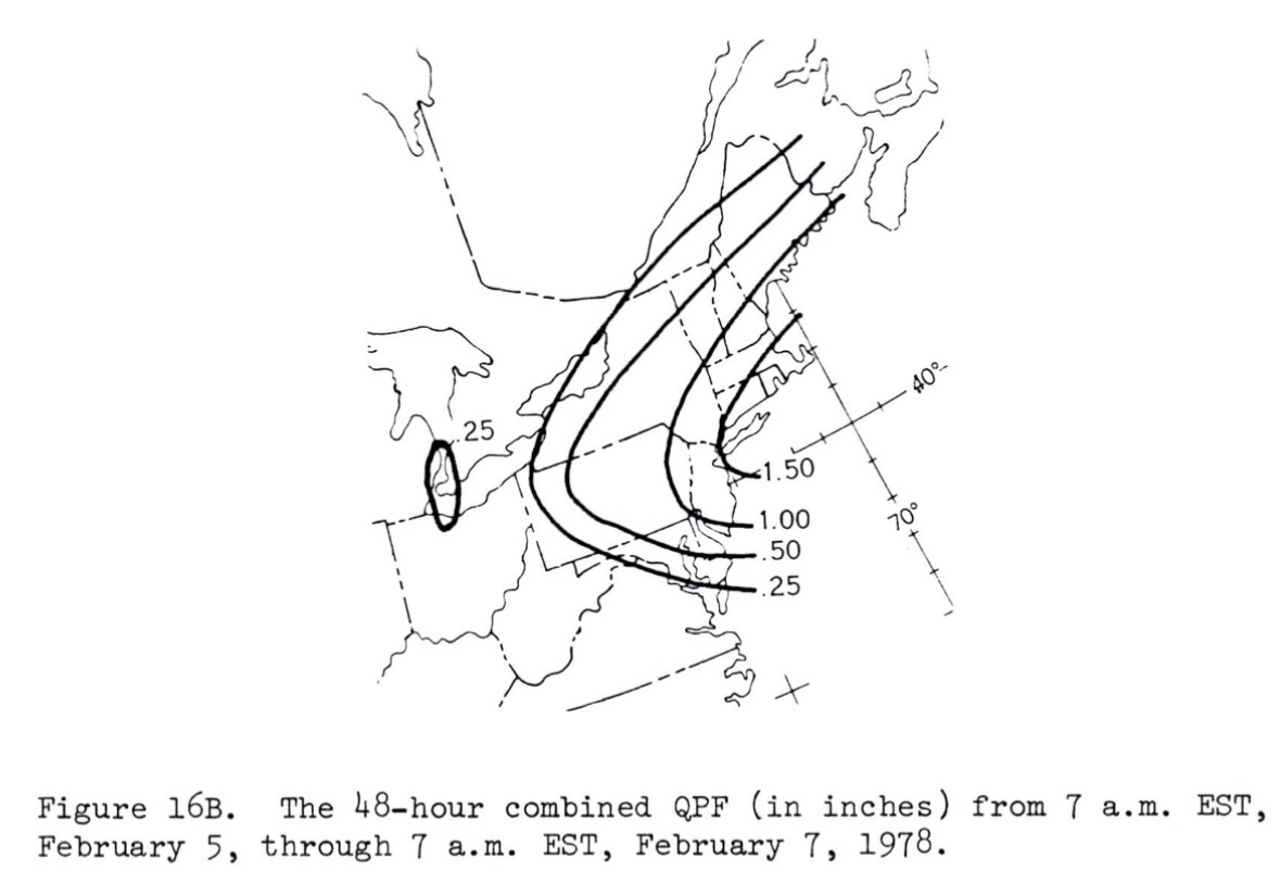 Close but not quite in the final quantity. In the that 1978 analysis the 1.5" was the equivalence around 23.0" of snow due to ratios which they stated was a crude estimate at the time but one should get the point. The Cape got less in that due to the track and dry slought of the storm.
