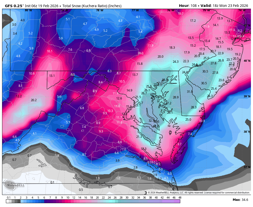 I think most models are in the 2-6ish inch range at this point (although increasing) and we would have a decent idea of what’s coming, if not for the GFS… making a legendary Hail Mary play to stay relevant